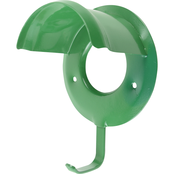 Mountable aluminum single bridle hanger with hollow semi-circle design made to keep the shape and integrity of a leather bridle. Additional lower hook.